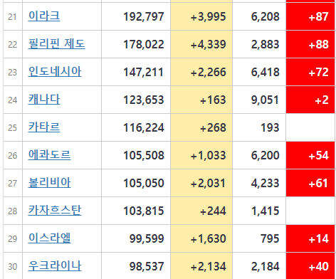 전 세계 국가별 코로나바이러스19 확진환자 현황
